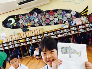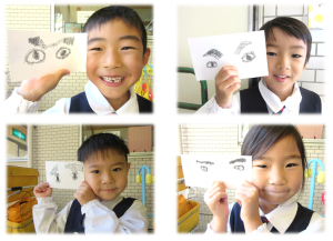 目やまゆ毛の形も、一人ひとり違う対象を観て描いているので、全員違っていて当たり前です。描いている子ども達に「よく気が付いたね。」「あなたの目はそうなっているんだね。」と一人ひとりを認める言葉掛けを心掛けています。また、子ども達から自発的な活動も見られるようになってきました。